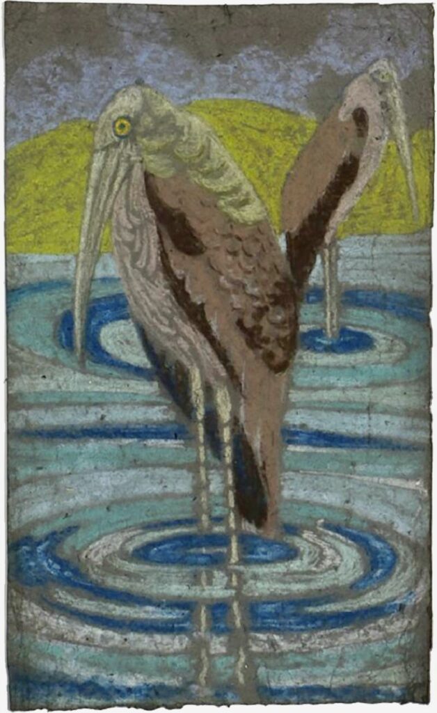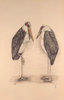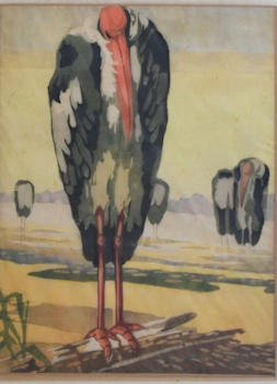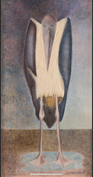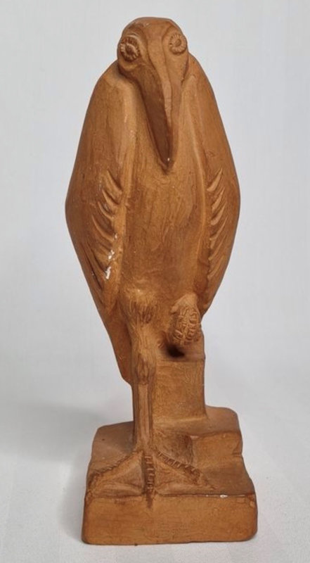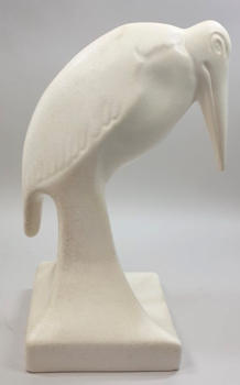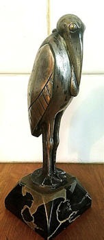 The Marabou stork (Leptoptilos crumenifer) is a large wading bird native to sub-Saharan Africa. With its oversized bill, sparse head feathers, and almost Gothic appearance, it is often found near both wetlands and city landfills—never far from human life. This unlikely muse inspired painters, sculptors, and decorative artists alike during the 1920s and 1930s, drawn by its odd elegance and the tension it evokes between the natural and the surreal.