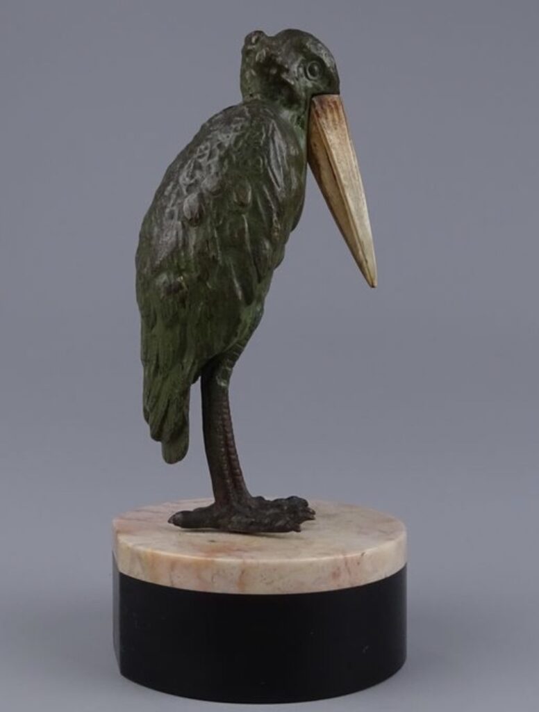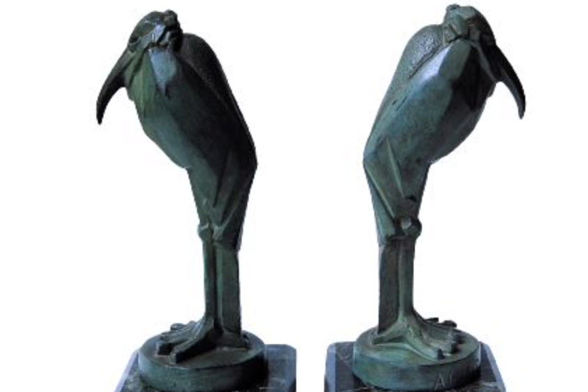The Marabou stork may not be the first bird that comes to mind when thinking of grace or beauty, but during the Art Deco period, its dramatic form, stark silhouette, and quietly imposing presence caught the eye of some of Europe’s most daring and original artists. Here, we shine a spotlight on this curious creature—through the lens of the Art Deco imagination.